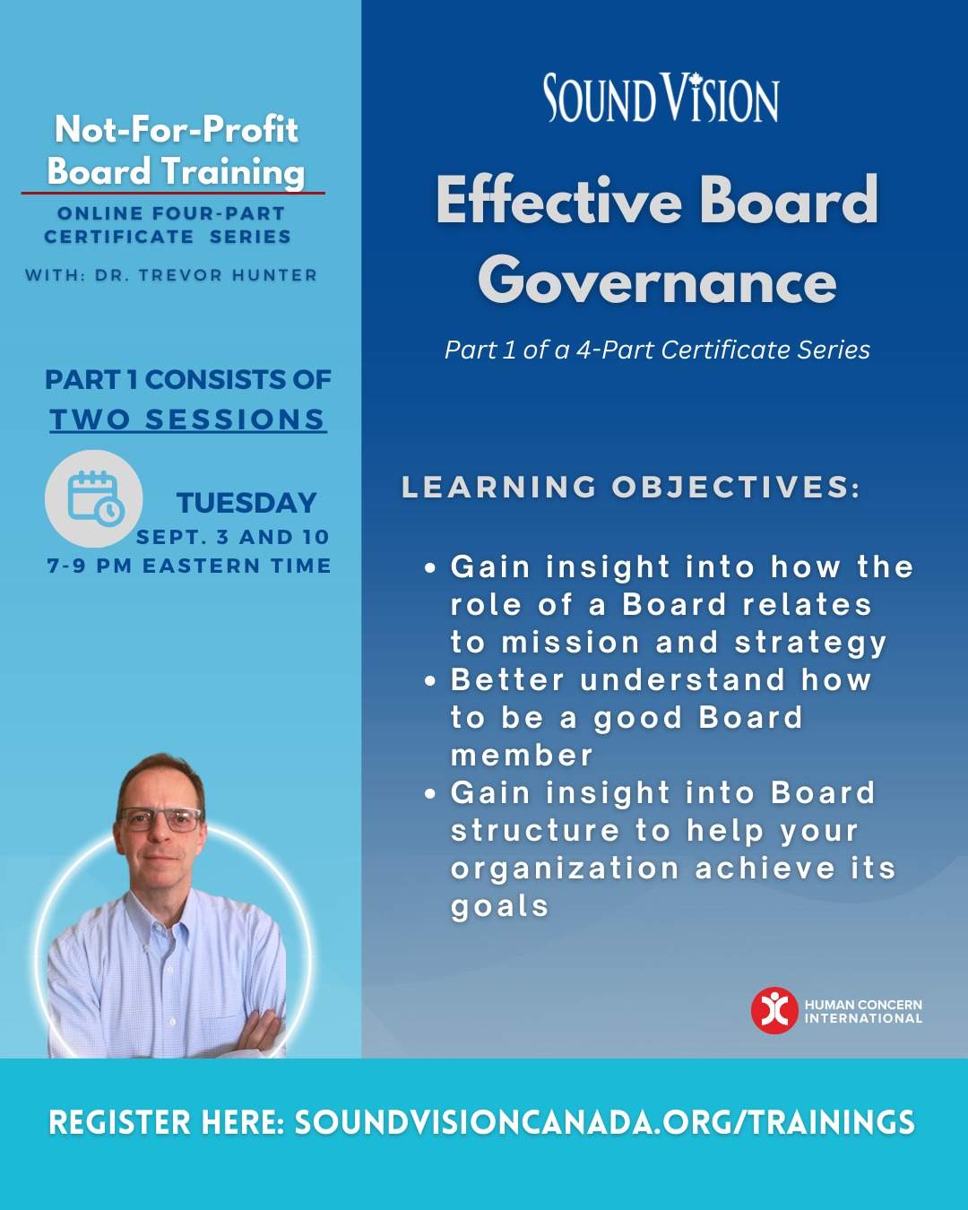 We are delighted to offer a specialized training certificate series with Dr. Trevor Hunter to help you improve your skills as a not-for-profit board member.