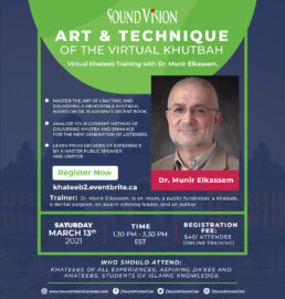 Learn “The Art and Technique of the Virtual Khutbah” as written by Dr Elkassem in his book Analyze your current method of delivering Khutba and enhance it for the 21st century audience…