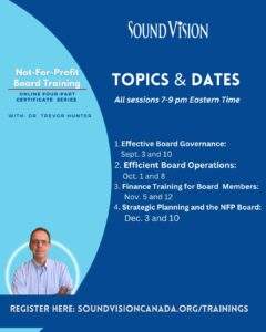 We are delighted to offer a specialized training certificate series with Dr. Trevor Hunter to help you improve your skills as a not-for-profit board member.